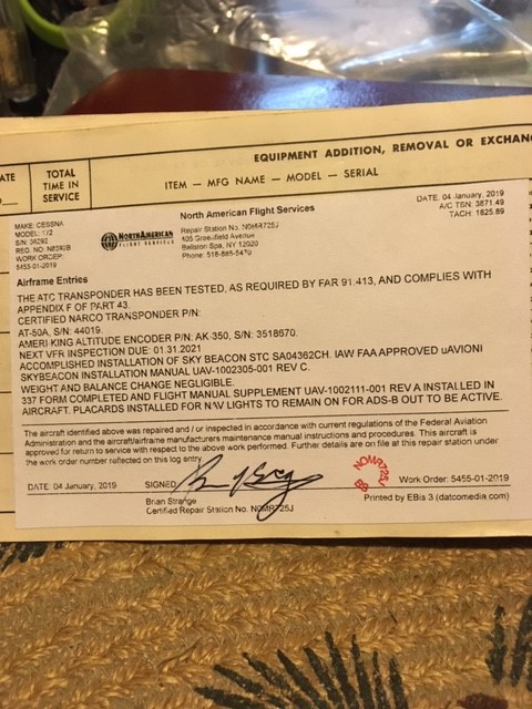 | Avionics | uAvionix Skybeacon 337 STC Garmin GTR-225 AmeriKing AK-350 Narco AT-50A Narco ELT-10 10/20 Gyro KCA S/N 792 |