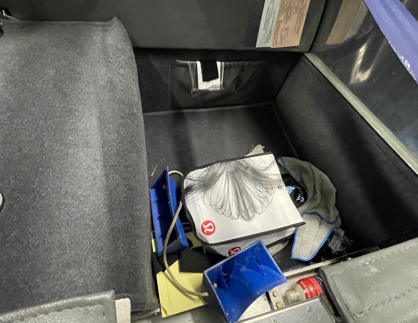 Grey interior with blue accents